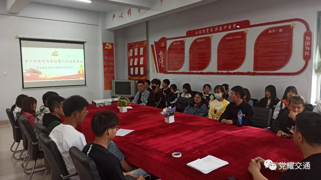 2021年5月6日下午4:20,在长春建筑学院交通学院党团活动室召开了第二次全体会议,本次会议由交通学院青马学社社长高健棋主持,全体青马学社学生干部参加。