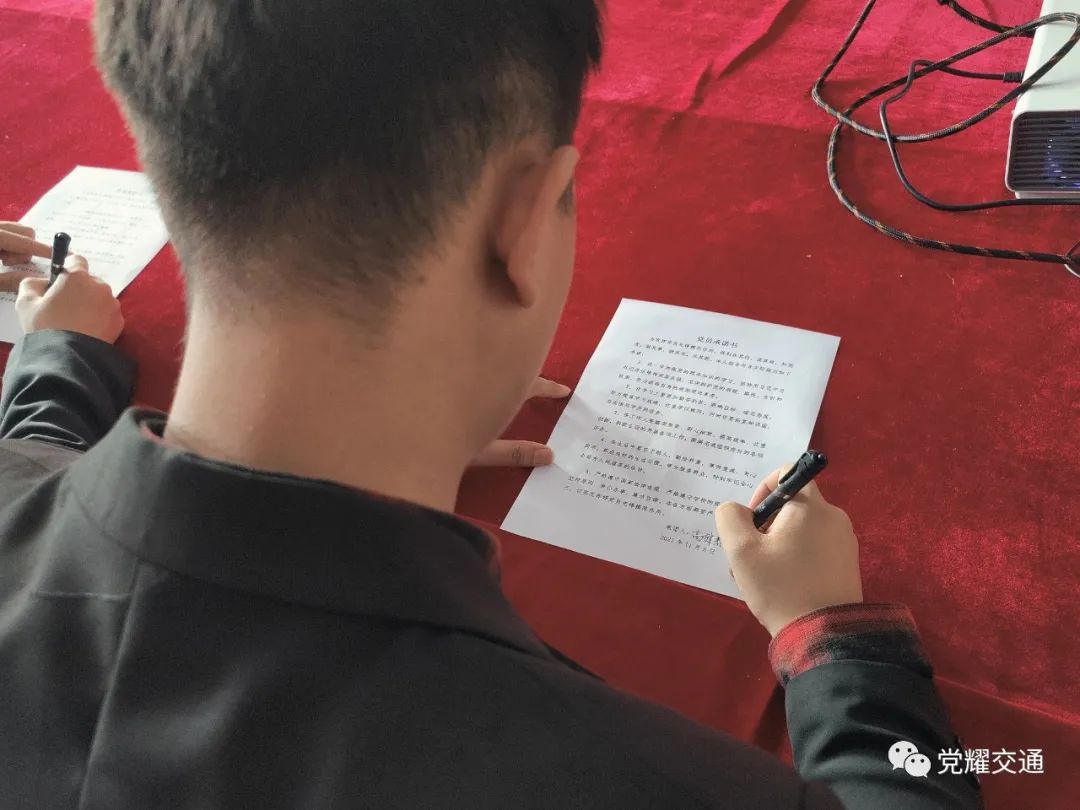 2021年11月5日11:30,长春建筑学院交通学院在党团活动室组织开展“佩戴党徽亮身份,郑重承诺作表率”主题党日活动,并组织教工党员与学生党员签订了党员承诺书。
