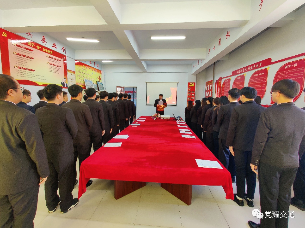 2021年12月23日中午11:00,长春建筑学院交通学院在党团活动室举行了新党员入党宣誓仪式。学生支部书记王帅出席宣誓仪式并讲话,44名新党员参加了宣誓仪式。