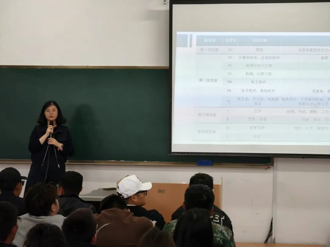 会上曲畅老师首先向同学们全面介绍了校图书馆的概况。从历史沿革、建筑特色,到馆舍布局、海量的馆藏资源和现代化的服务设施,都做了详细的讲解,让同学们对这座知识殿堂有了整体的认识。