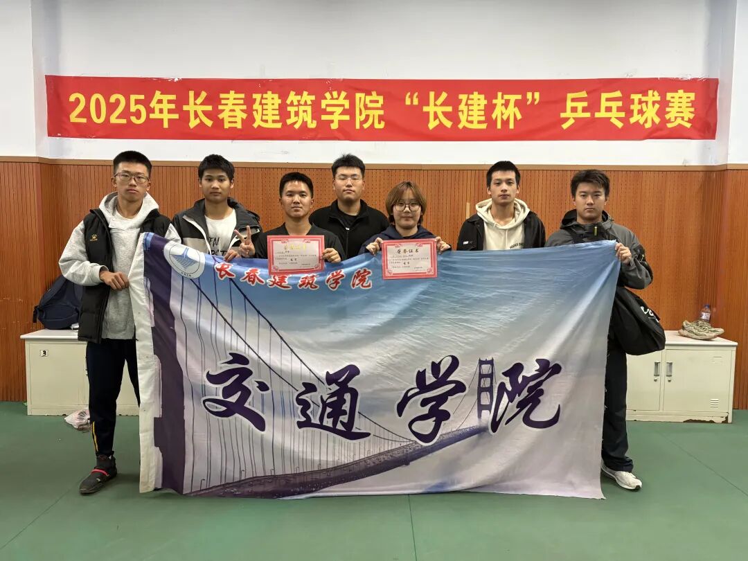 交通学院乒乓球团队成员吴桐、李忠昊、邢家玮三名同学成功斩获2025年长春建筑学院“新生杯”乒乓球赛团体赛冠军。