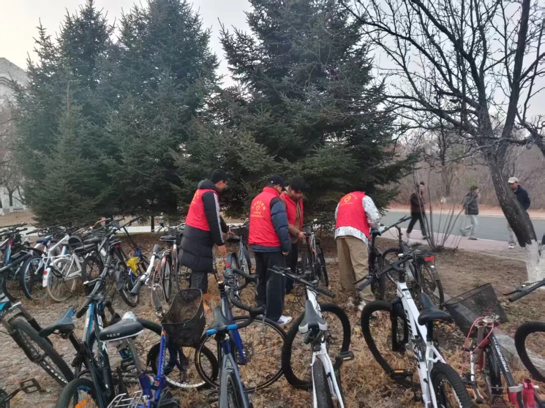 校园环境清理工作中,身着红马甲的志愿者们精神抖擞。无论是俯身清理道路与绿化带内的垃圾、手持工具清扫墙角台阶的尘杂,还是帮扶规整自行车以优化区域环境,他们始终分工清晰、配合默契。面对脏污毫无惧色,面对辛劳从不推诿,细致排查每一处卫生死角,即便额头渗汗,也始终热情不减,用行动为校园焕新贡献了力量。