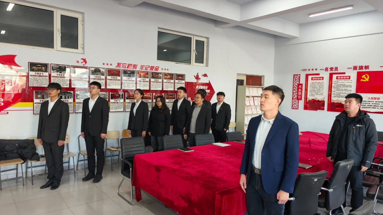 仪式过程中,由李俊达同志带领全体新发展党员进行宣誓。面向鲜红的党旗,持立正姿势,举起右手,握拳过肩,面对党旗庄严宣誓:我志愿加入中国共产党,拥护党的纲领,遵守党的章程,履行党员义务,执行党的决定,严守党的纪律,保守党的秘密,对党忠诚,积极工作,为共产主义奋斗终身,随时准备为党和人民牺牲一切,永不叛党。